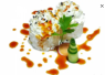 ♦️ Tempura di gambero, philadelphia e avocado, avvolto da salmone scottato, con sopra scaglie di mandorle e salsa teriyaki